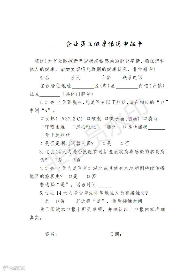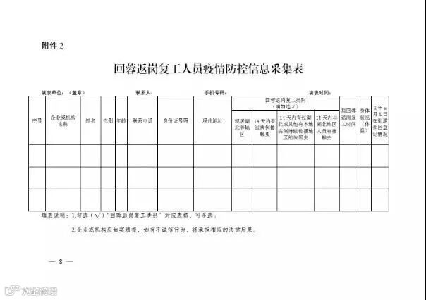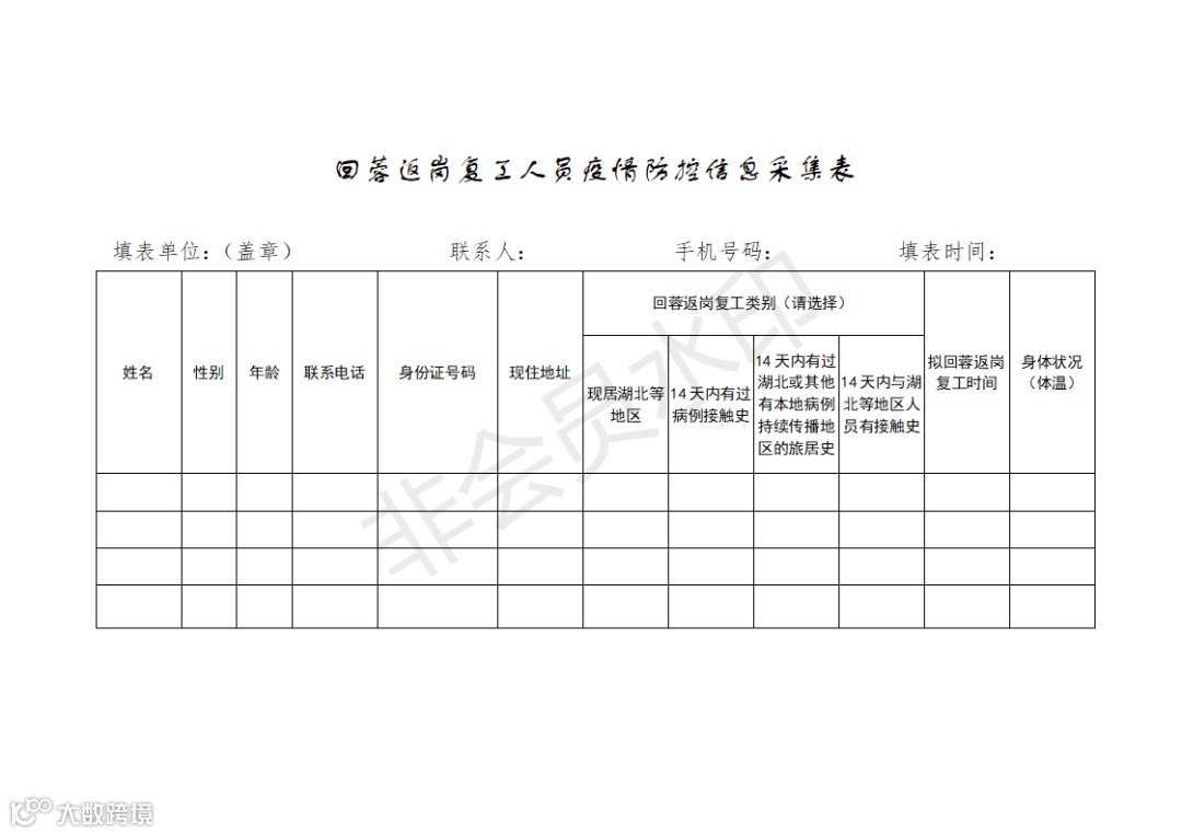 填报复工人员疫情防控信息采集表