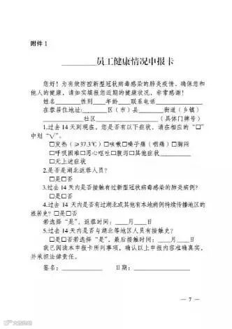 返岗员工提供医院开具的健康证明或如实填报健康情况申报卡