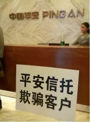现场维权的投资者介绍:他们分别于2014年11月,及2015年2月购买了相同两批次的平安信托产品——“光华上智·平安信托1号资产管理计划”,和“光华上智·平安信托3号资产管理计划”,投资门槛100万起,据当时平安信托的销售人员称“该产品仅针对优质老客户,是平安信托的保本保息产品,年利率11%,有充分的担保物,并已通过平安信托的风控流程审批,是非常安全的一个产品。”然而产品到期后,他们却纷纷发现该产品本金巨额亏损,无法兑付的投资本息达1个多亿元。由于合同约定的产品是保本保息,这些投资者表示完全不能接受这一结果。