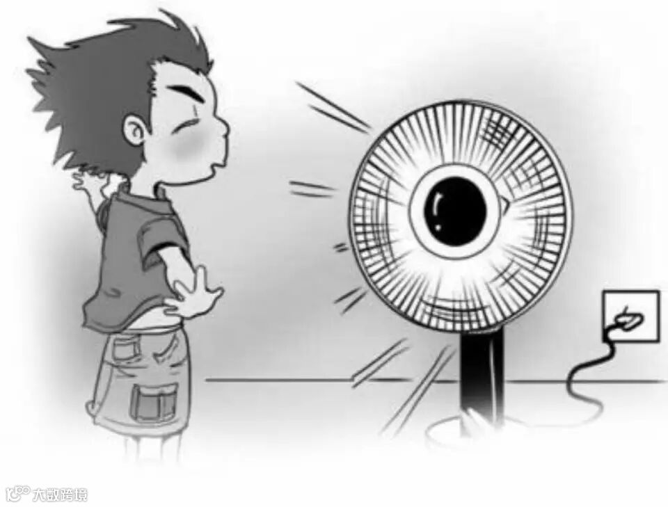 风扇扇风,风出扇,扇动风生。摇动起手中蒲扇或者纸扇摇扇的频率要适中,频率太快手会酸,频率太慢热得慌。