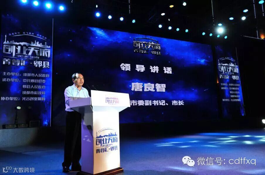 在5月30日晚“创业天府·菁蓉汇·郫县”专场活动现场,被业内誉为“创业市长”的——成都市委副书记、市长唐良智力挺郫县创业投资环境。