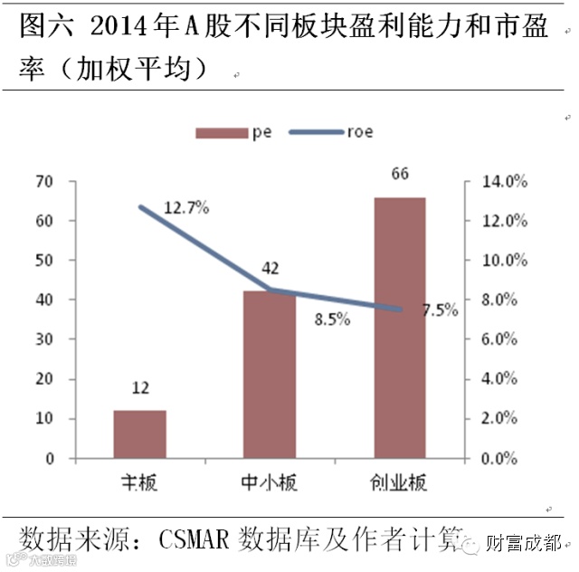 按公司的赚钱速度即净资产收益率来讲,主板最高为12.7%,中小板次之为8.5%,创业板最差仅为7.5%。