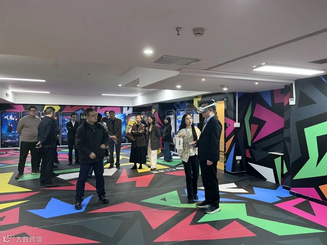 在西部电影集团,考察组一行体验了无界影院、西影电影博物馆、XR电影产业情况。在无界影院亲身感受打破传统观影边界的沉浸效果,光影与声效的融合带来全新感官体验;在西影电影博物馆内,珍贵的电影道具、历史影像资料系统呈现了中国电影的发展脉络,更加直观了解行业历史积淀;在XR电影产业区,展示了前沿的拍摄技术,给考察组留下深刻印象。在十里沣河影视基地,考察组重点调研了微短剧从剧本创作、拍摄制作到后期剪辑的标准化流程,详细了解基地如何通过规范流程提升产能。西安大千迷境科技所呈现的VR沉浸式开发、制作与体验为双方在技术协同与IP开发领域的发展提供了新思路。在栢奕集团,调研学习了企业游戏平台运营成果。