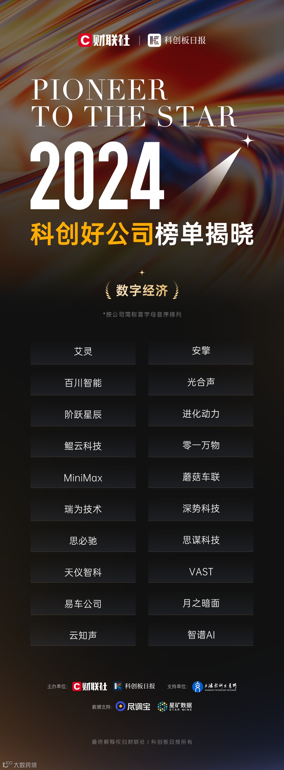 就在25日当天,财联社、《科创板日报》联合发布的2024【科创好公司评选】数字经济好公司榜单,月之暗面荣登上榜。