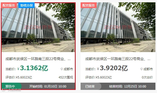 据京东法拍平台消息,蓝光发展位于成都市武侯区一环路南三段22号商业、办公、车位在建工程及土地使用权项目,将于这个月10号进行“二拍”。