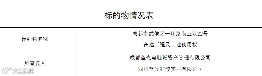 据公开信息显示,被拍卖的项目实际所有权人是成都蓝光电脑城资产管理有限公司和四川蓝光和骏实业有限公司,这两家公司均由四川蓝光发展股份有限公司(下称蓝光发展)出资成立的,执行该项目拍卖的主体是中国建设银行成都自贸区分行,建行成都自贸区分行也希望拍掉这个“烫手山芋”实现资金变现。