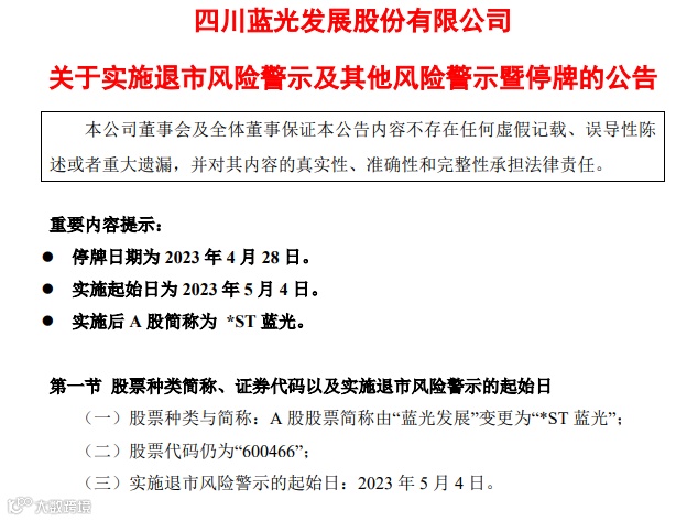 管理失控,过度扩张,资金链疲弱……一系列的问题导致投资者失去信心。2023年5月,蓝光发展的股价连续20个交易日收盘价低于1元,每股0.41元,在停牌近一个月后,蓝光发展于2023年6月6日,正式中止上市,许多人开始叹息,蓝光发展成为第一家A股退市的房地产企业,仿佛从这里开始,蓝光发展走上了下坡路。
