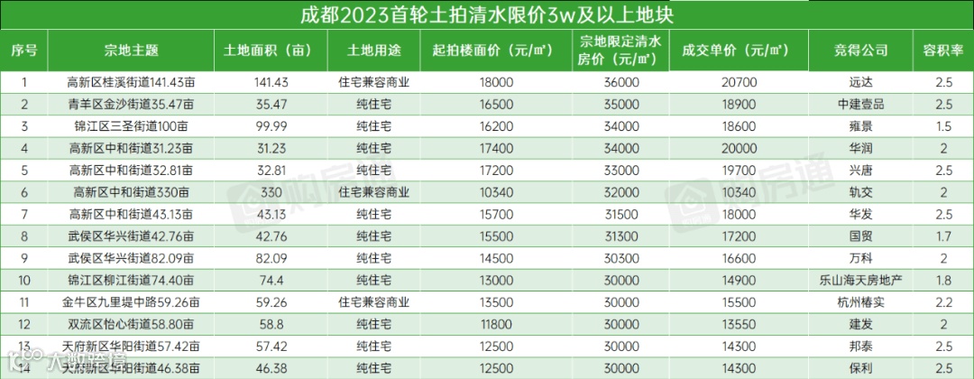 2023年首轮土拍已顺利收官,共成交34宗地,约1,892亩,其中15宗土地熔断抽签,14宗土地清水限价3万及以上,两者均创单轮土拍新高。限价3万即将成为常态...