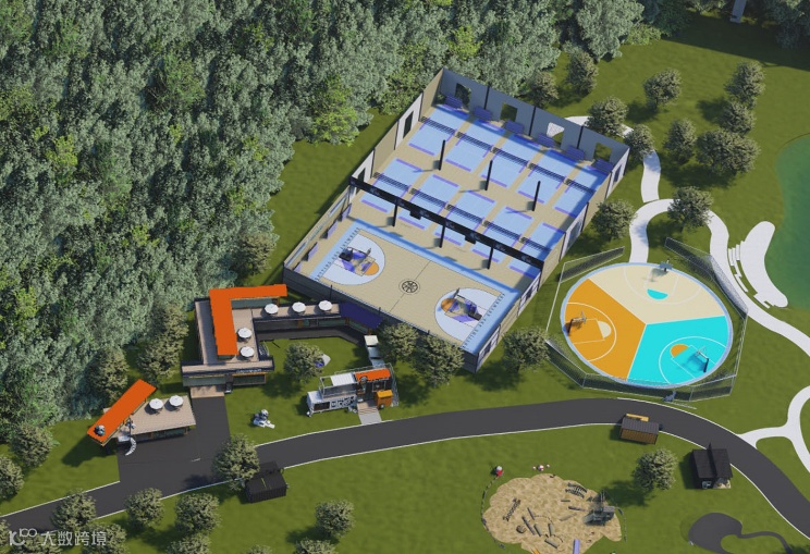长方形区域将建设一个综合馆,由三个室内馆组成,包括一个篮球馆和两个羽毛球馆。场馆顶部都是相连的人字顶,而且里面使用的都是比赛级的木地板。也就是说,这个场地不仅可以进行简单的热身运动,还能承载专业训练。