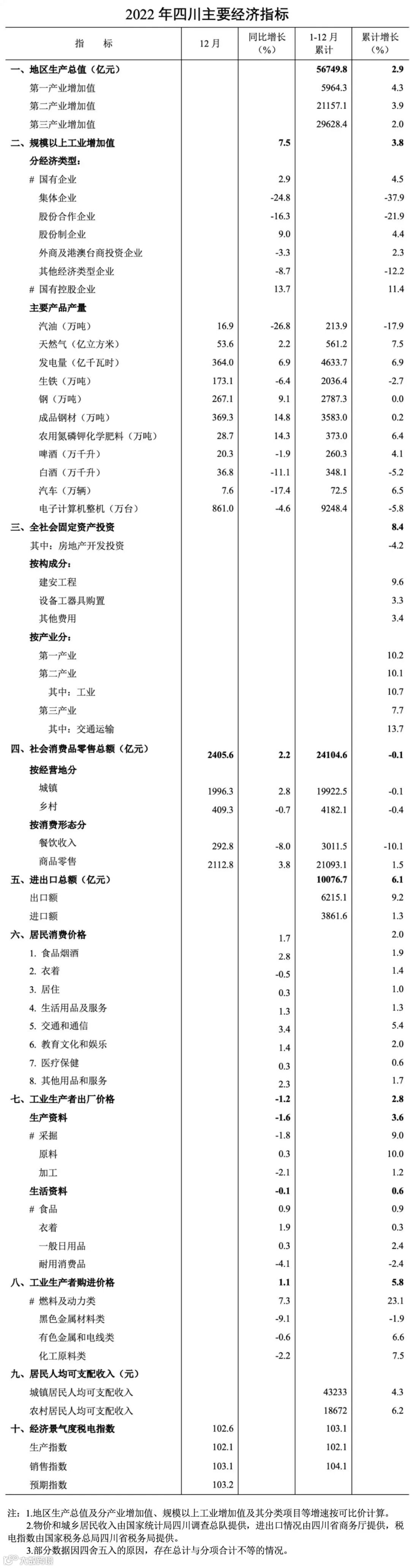 2022年四川GDP年增2.9%,