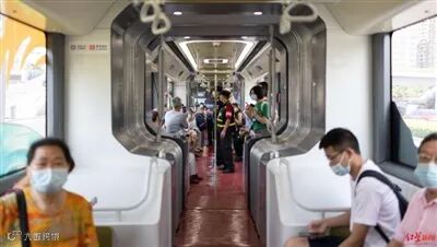 记者注意到,位于车门上方的显示屏,除显示线路信息外,还可实时显示车厢拥挤度,为乘客乘坐提供指引,除此以外,在车窗一侧的显示屏,则还可显示车辆行驶速度,以及车辆各车厢温度。
