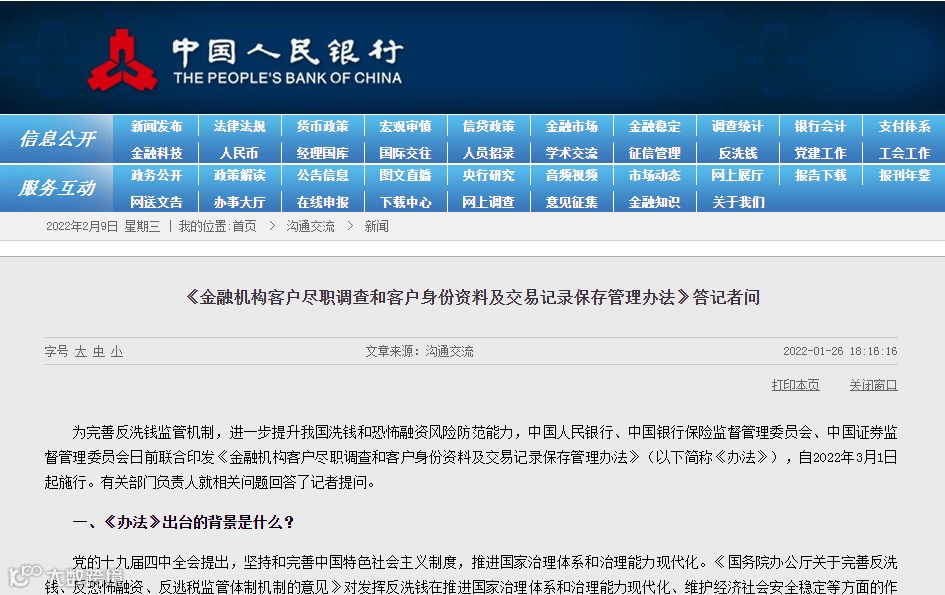 及交易记录保存管理办法》发布不久