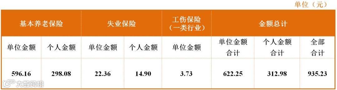 四、单位职工申报工资低于缴费基数下限标准的各项社会保险费月缴费金额