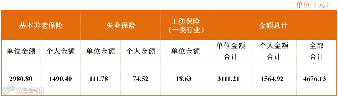 五、单位职工申报工资高于缴费基数上限标准的各项社会保险费月缴费金额