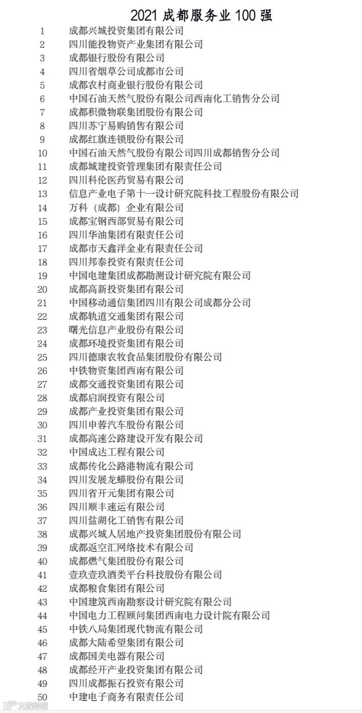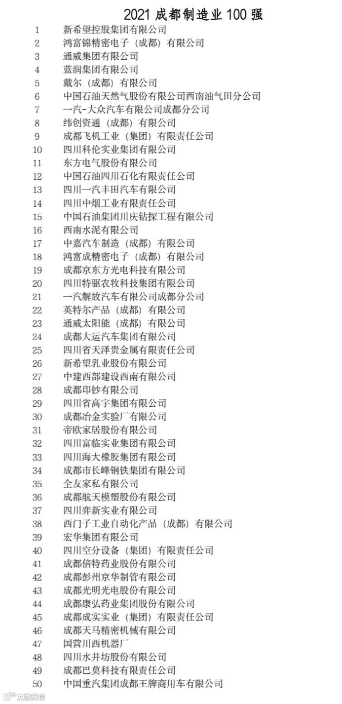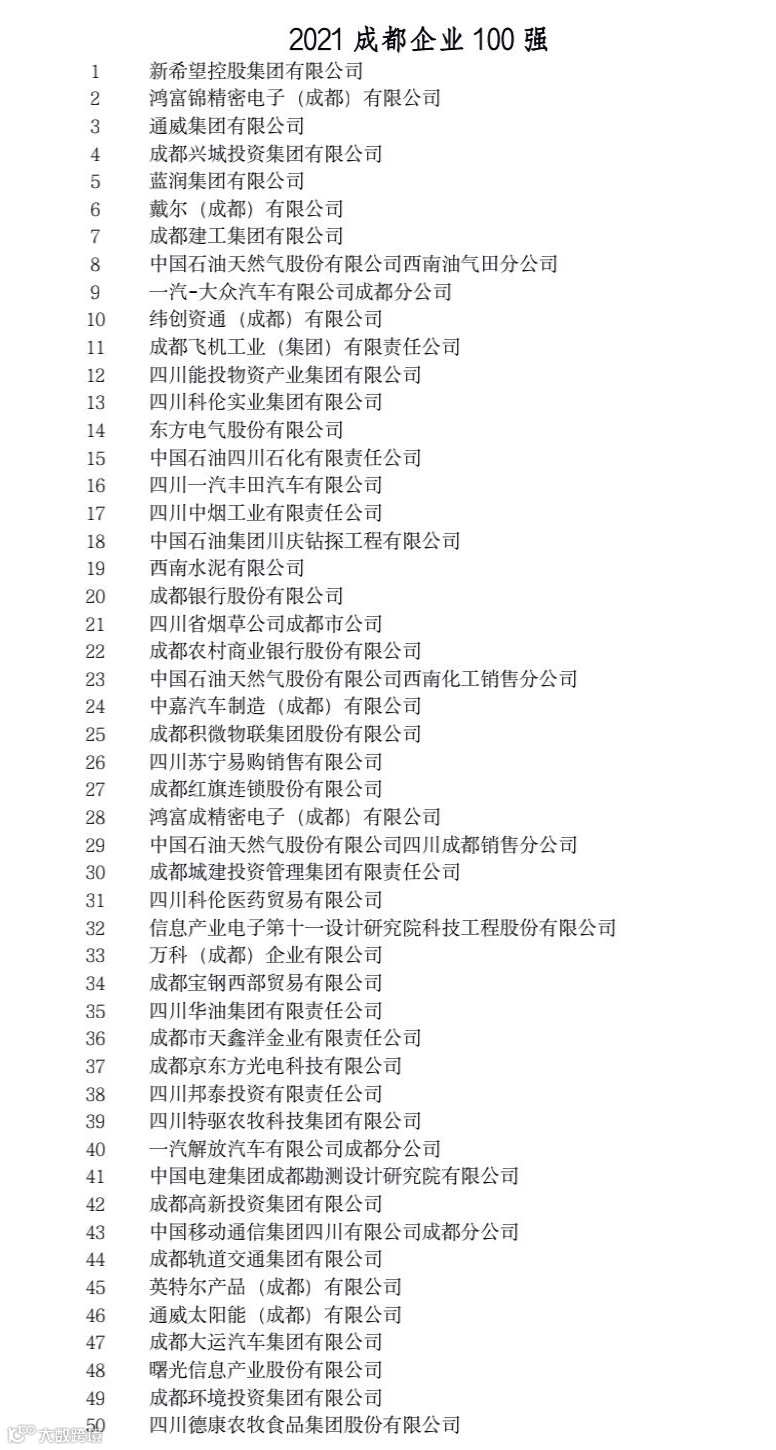 这些榜单从多个角度反映了成都市大企业