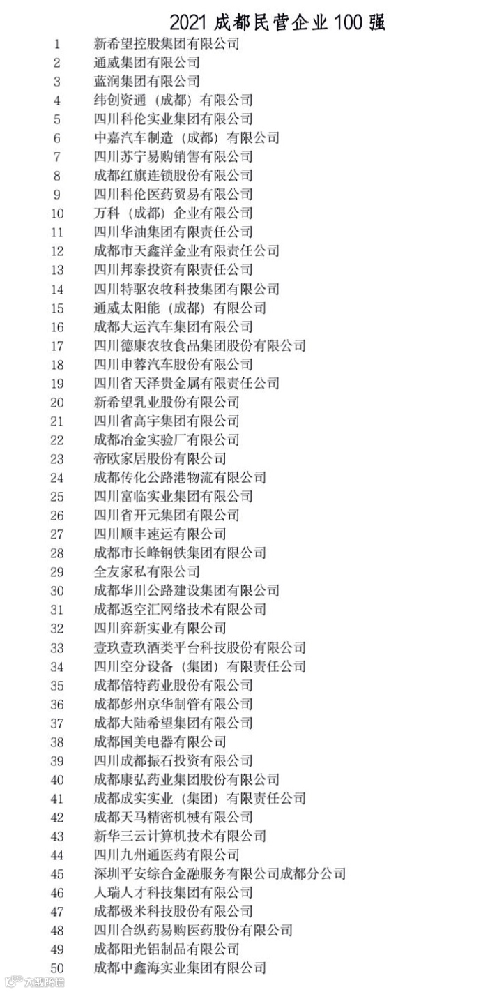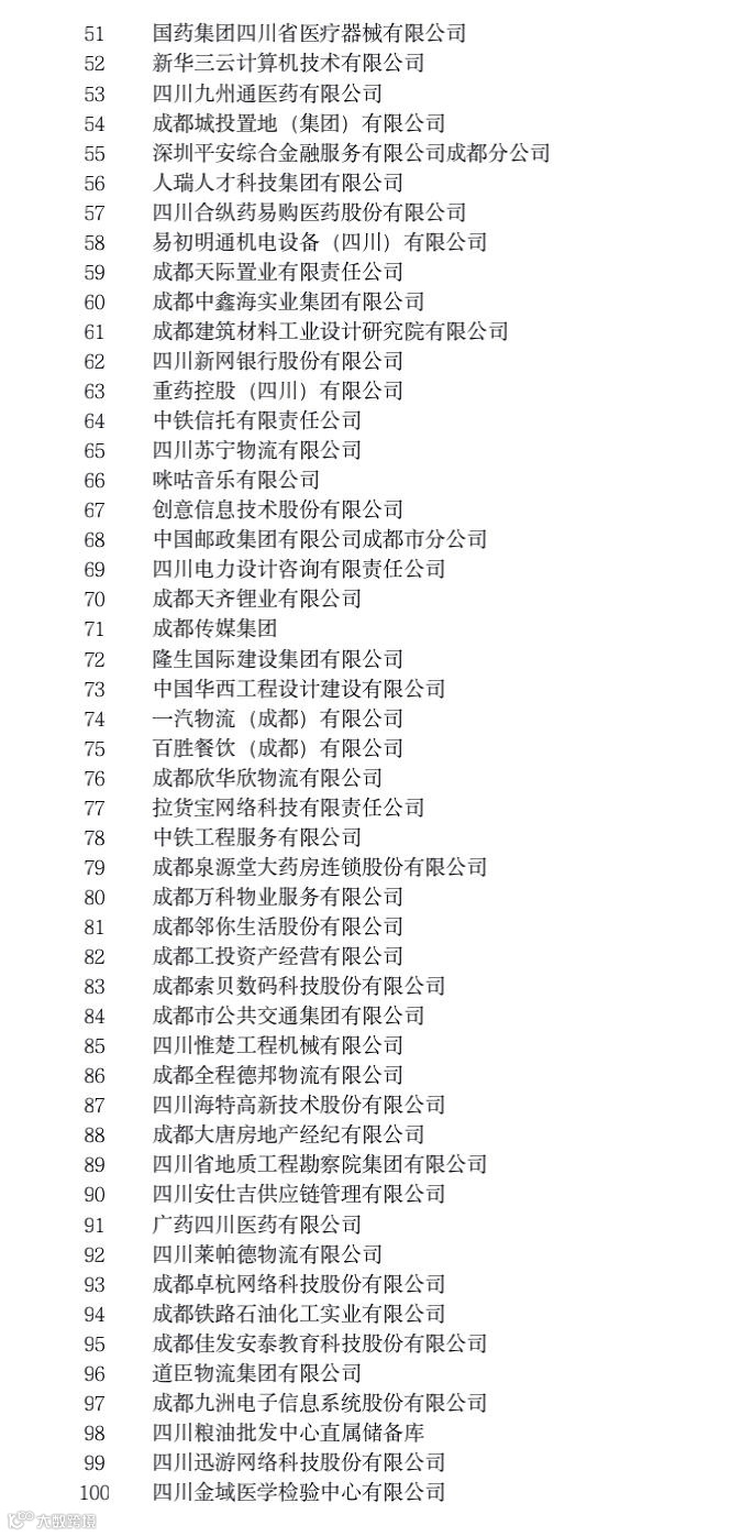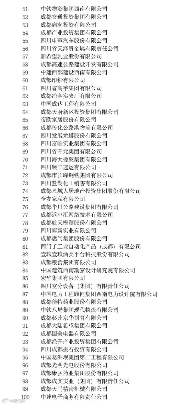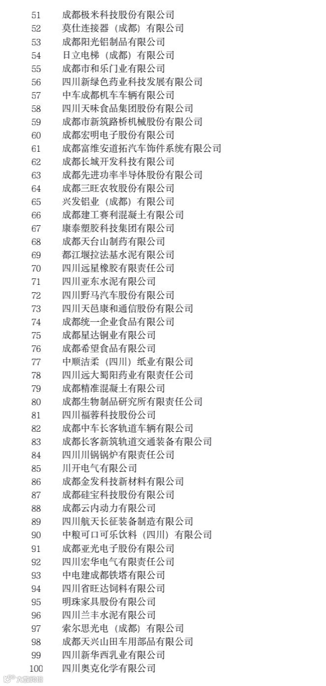 这些榜单从多个角度反映了成都市大企业