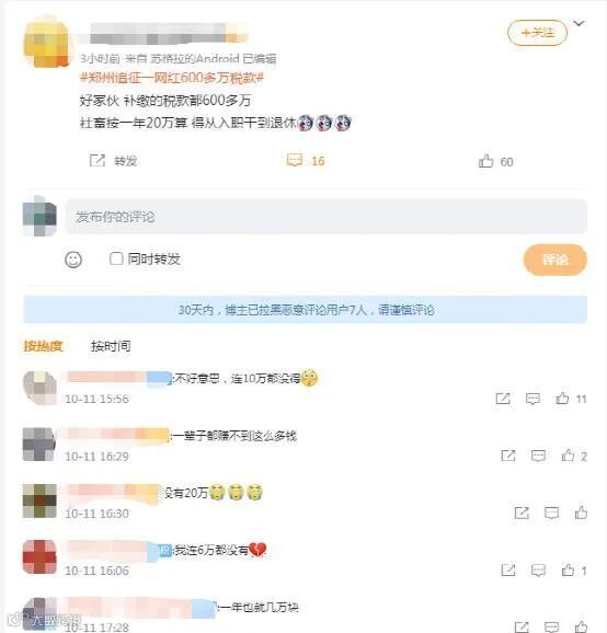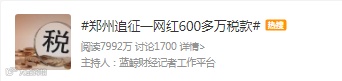 10月11日,话题#郑州追征一网红600多万税款#登上热搜。对于绝大多数人来说,这可是一笔巨款!