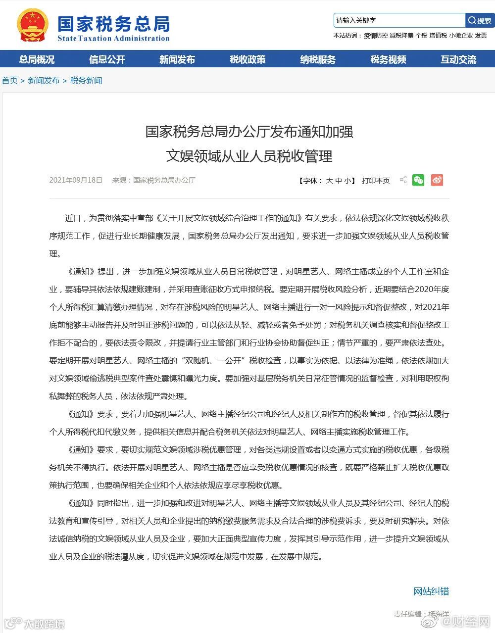 多位财税专家据此分析,税务总局该案例尚在侦查中就被公开,表明针对网红明星税收检查已进入实质性阶段,这种案例公开能起到“杀一儆百”的作用。由于年底前主动报告并解决涉税问题可减罚免罚,预计会迎来新一波明星、网红主播补税潮。