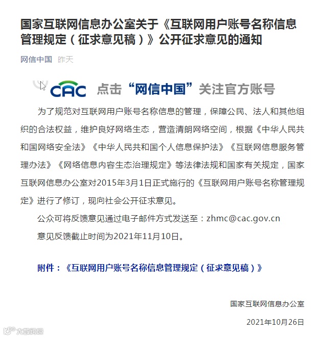 网信办就曾发布“昵称十条”