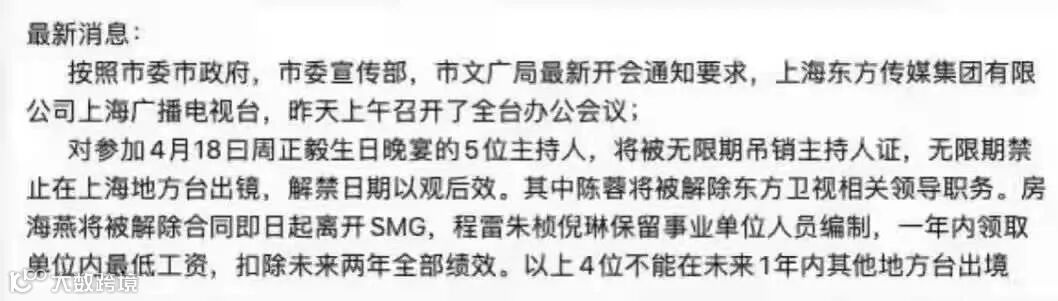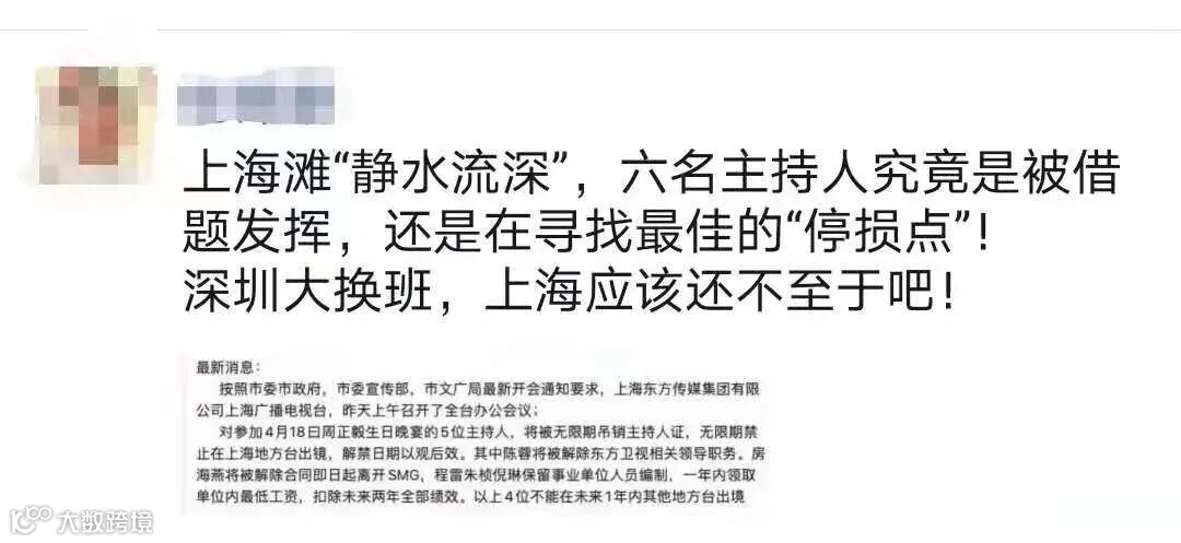 比如最近朋友圈疯传的上海主持人被处罚的事。