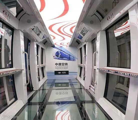 新能源全景空铁。空铁颜色为黑白相间,大体形态类似熊猫空铁,但和熊猫空铁不同的是,新车可270度观景。全景式新能源空铁,全透明的车厢,架设于离地5米的空中,列车呈U字形,全长1.4公里。当司机按下按钮,脚下玻璃变透明,抬头见蓝天白云,低头见悠悠草地,坐在上面岂不是有一种飞起来的感觉。