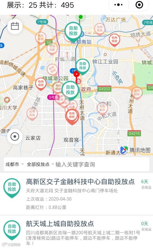 用户在自助投放点领取空袋、投放满袋,