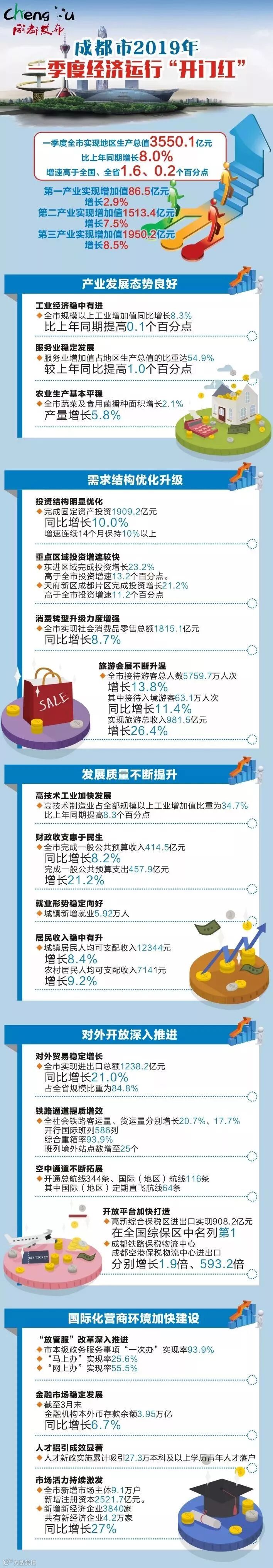 总的来看,咱们成都一季度全市经济开局平稳,延续了总体平稳、稳中有进的发展态势,经济发展基本面长期向好。