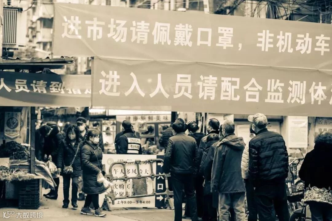 进市场排队,测体温后限量进入
