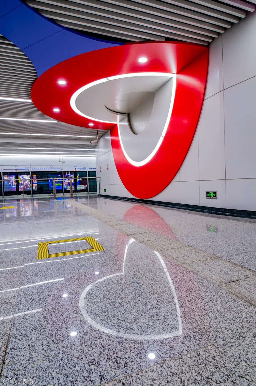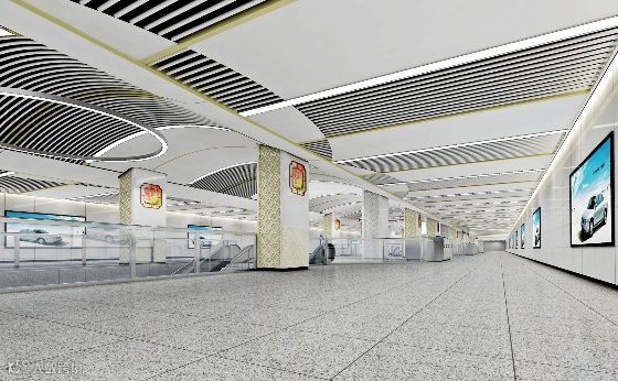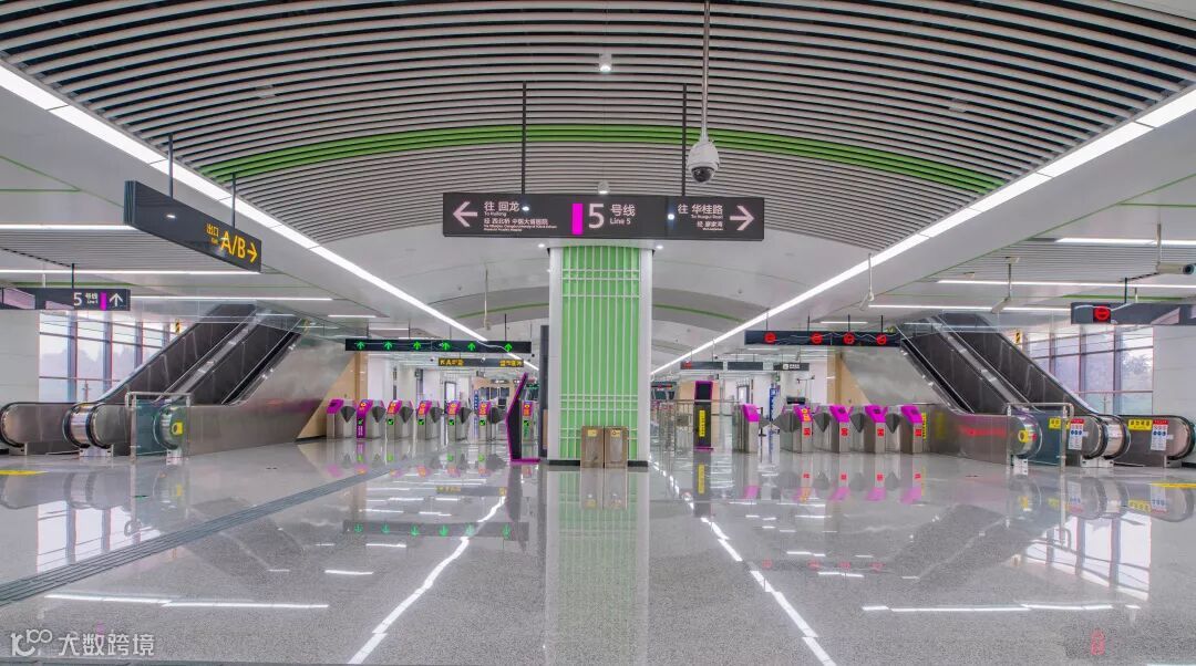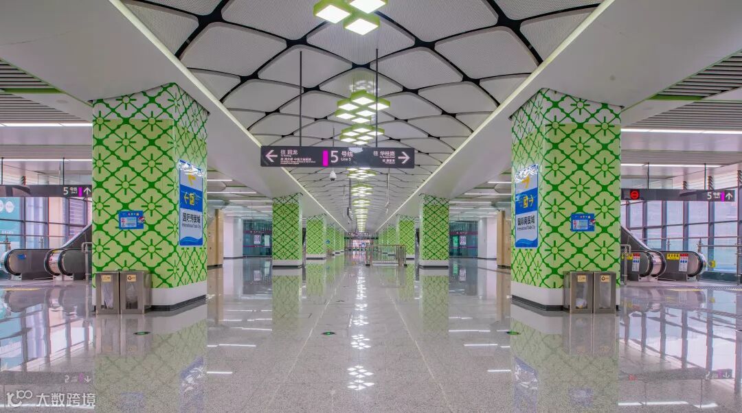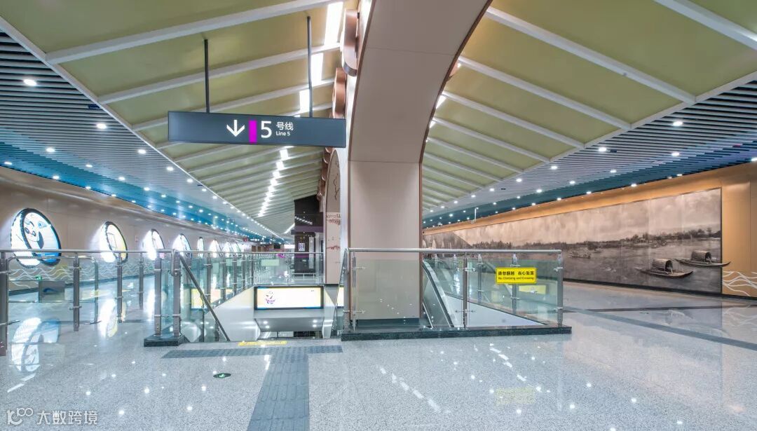 5号线的普通标准站按北段发展区、中段成熟区、南段新城区设置。顶面绘有芙蓉花造型,地面铺装常规的白麻花岗岩,既美观又实用。