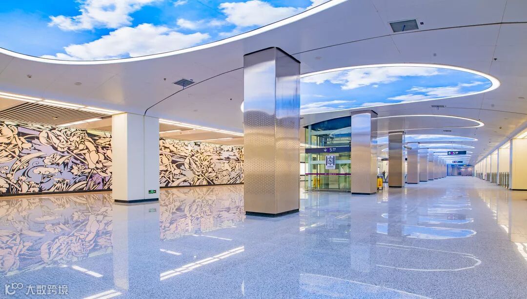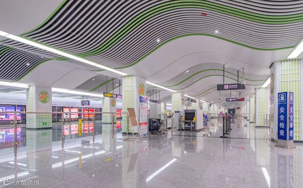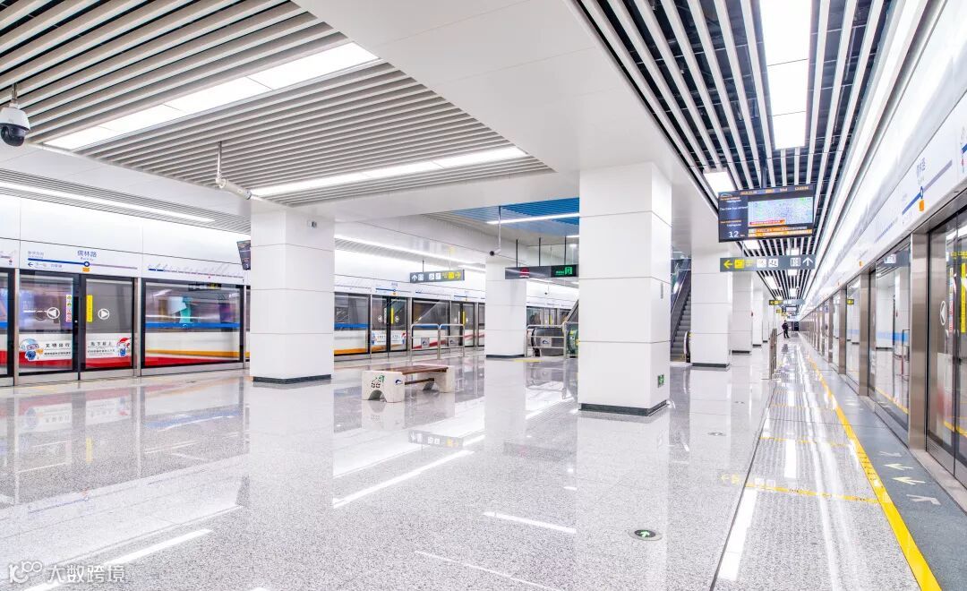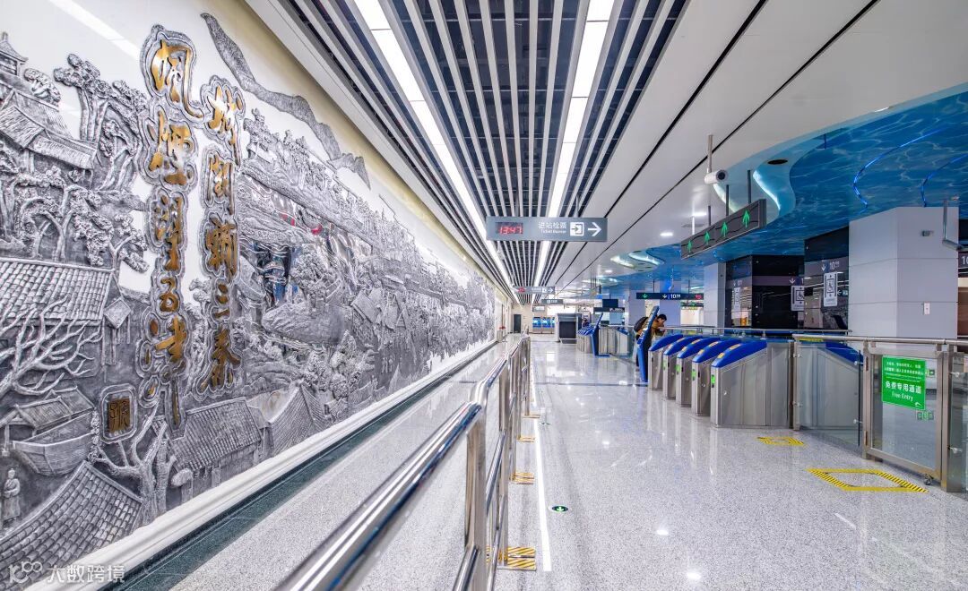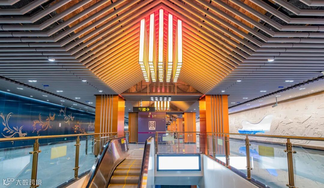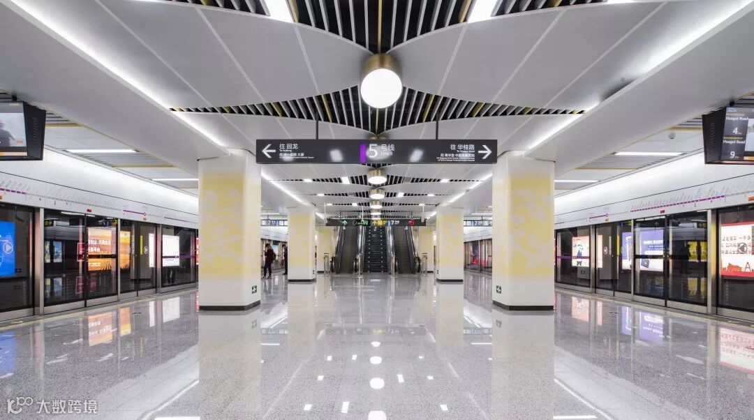 5号线的普通标准站按北段发展区、中段成熟区、南段新城区设置。顶面绘有芙蓉花造型,地面铺装常规的白麻花岗岩,既美观又实用。