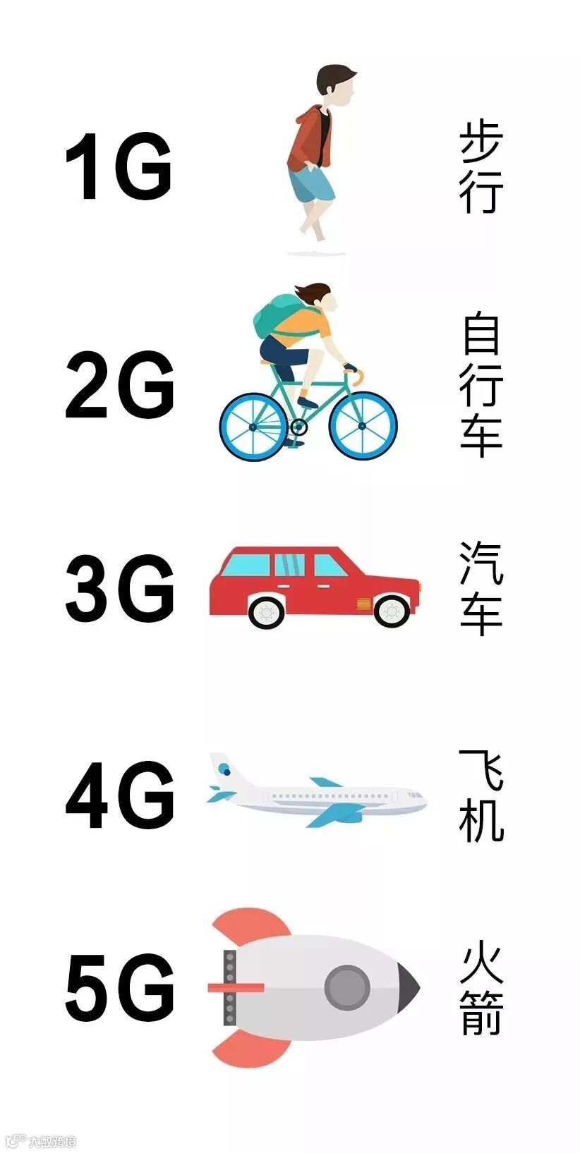 为了方便大家理解,更直观的了解1—5G的区别,请看下图: