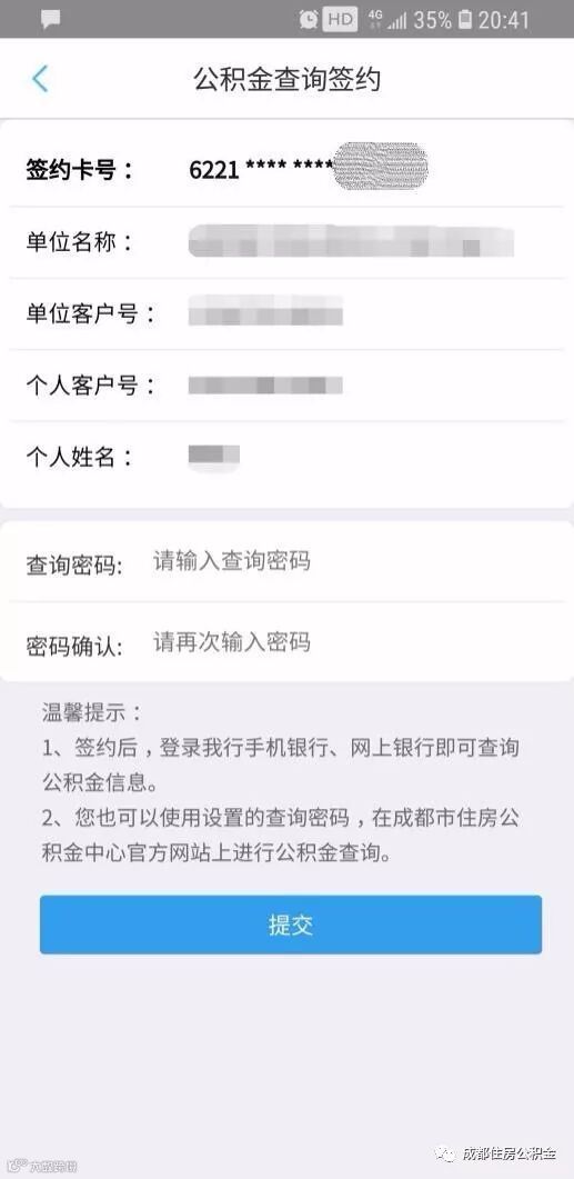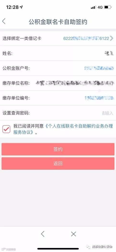 ②设置查询密码→签约成功