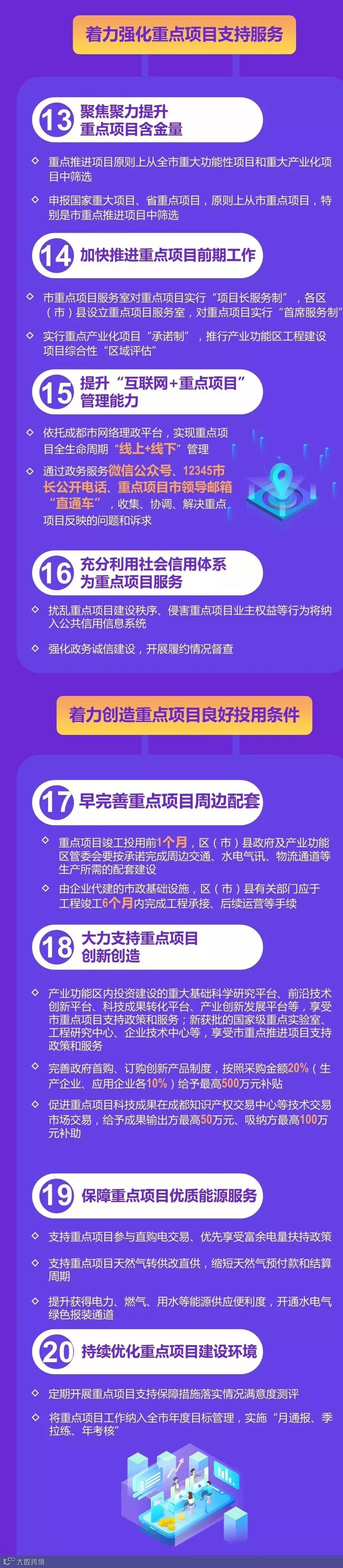 今天,成都市发改委对外表示,《成都市支持保障重点项目的20条政策措施》已正式印发。