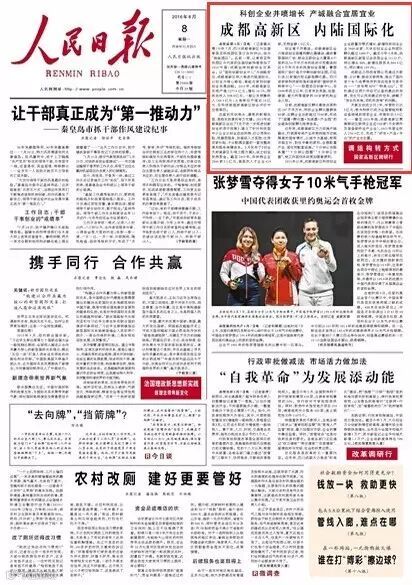 成都高新区登上了今天出版的《人民日报》头版