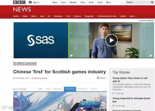 日前,在中国成都的天府软件园成长起来的游戏企业天象互动进军苏格兰游戏行业,成立了爱丁堡工作室。2月9日,英国BBC网站刊发了《Chinese 'first' for Scottish games industry》一文,报道了天象互动进军海外的这一重大举措,报道称,天象互动成为第一家进军苏格兰游戏行业的中国公司。