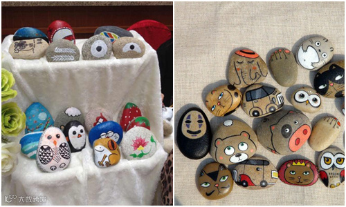 大家还可以参与手绘石头DIY。在纯天然鹅卵石上,用五颜六色的颜料彩绘出属于自己的独特图案,并且可以带回家。