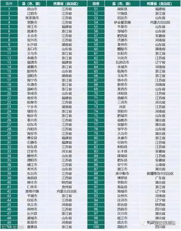 2021中国县域经济百强名单