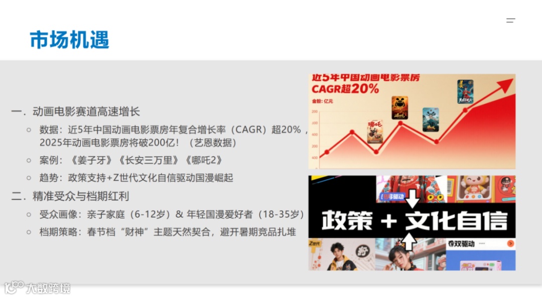 瞄准动画电影高速增长的市场机遇,以传统财富符号打造超级 IP 宇宙,融合非遗元素与前沿技术,精准定位亲子家庭与年轻国漫爱好者,抢占春节档黄金档期。众源资本针对发行平台与 IP 打造节奏提问,深度探讨同类 IP 竞争的抢占机制。