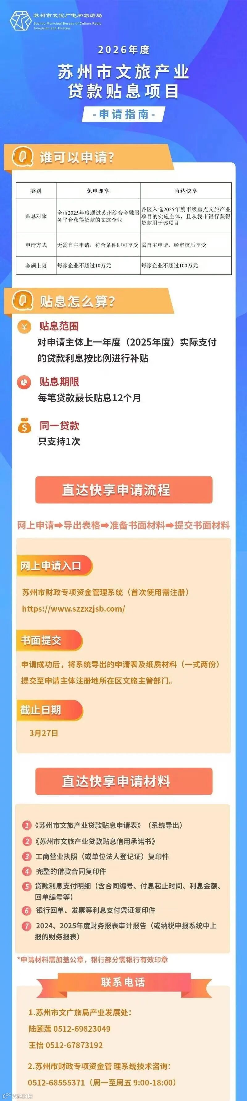 2026年度苏州市文旅产业贷款贴息项目申请指南来了!