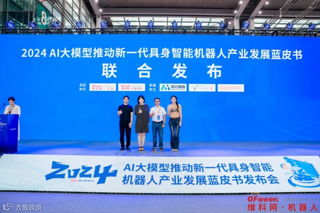 OFweek产业研究中心在会议现场重磅发布了《2024 AI大模型推动新一代具身智能机器人产业发展蓝皮书》。该蓝皮书由OFweek行业研究中心组织编撰,松灵机器人(AgileX Robotics)、微亿智造、阿普奇参与编撰,是2024年具身智能机器人行业首份内参资料。在调研终端应用及相关供应企业精准数据基础上,对当前具身智能机器人产业主要研发成果、产品应用特点进行详细解析,对行业未来热门应用领域进行了预判,并发布优秀企业榜单。