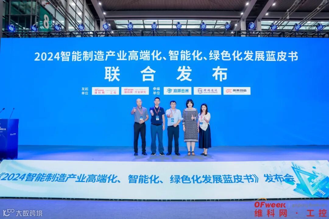 OFweek产业研究中心在会议现场重磅发布了《2024智能制造产业高端化、智能化、绿色化》。该蓝皮书由OFweek行业研究中心组织编撰,浪潮云洲、果栗智造、跨越速运参与编撰。蓝皮书在调研终端应用及相关供应企业精准数据基础上,对当前智能制造产业主要产品应用特点进行了详细解析,并有优秀企业榜单发布,同时对行业未来热门应用领域工业数字化升级需求空间及趋势进行了预判,旨在为广大企业提供发展方向,为应用端客户提供选型参考,推动制造业工业数字化产业转型升级应用。