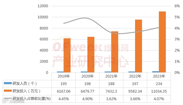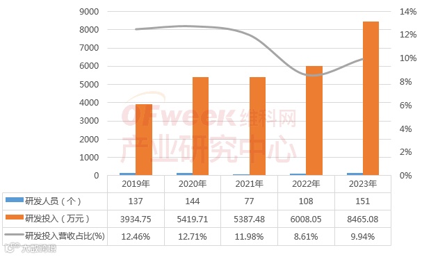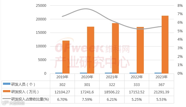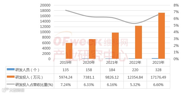 研发实力看,2020-2023年,先锋精科研发投入水平从1300多万元增长至3000余万元,有明显增长,但研发投入强度相对较低,仅为6%左右,业务相似的富创精密近5年研发投入强度超过9%、中科仪近5年研发投入强度超过11%。