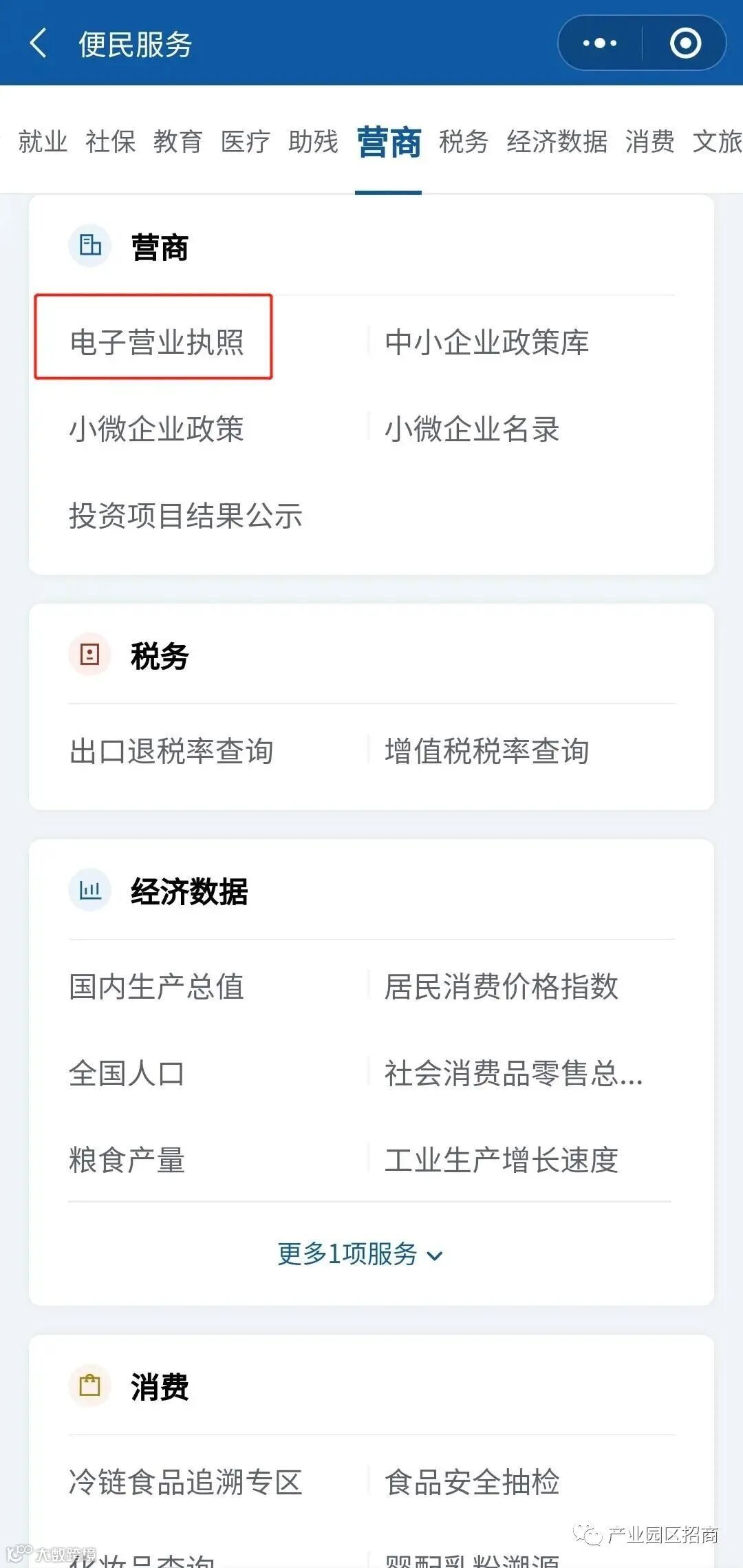 在【营商】板块,