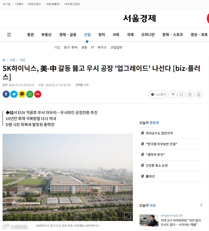 早在今年 1 月 13 日,《首尔经济日报》就曾报道,SK 海力士开始“升级”无锡工厂。