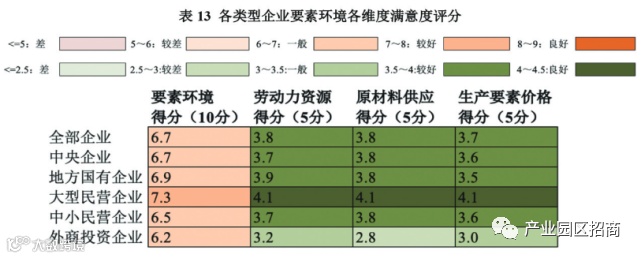 企业对于要素环境的总体评价一般,平均得分为6.7分。其中,外商投资企业对于要素环境的满意度最低,仅为6.2分;中小民营企业对于要素环境的评分同样较低(6.5分)(见表13)。