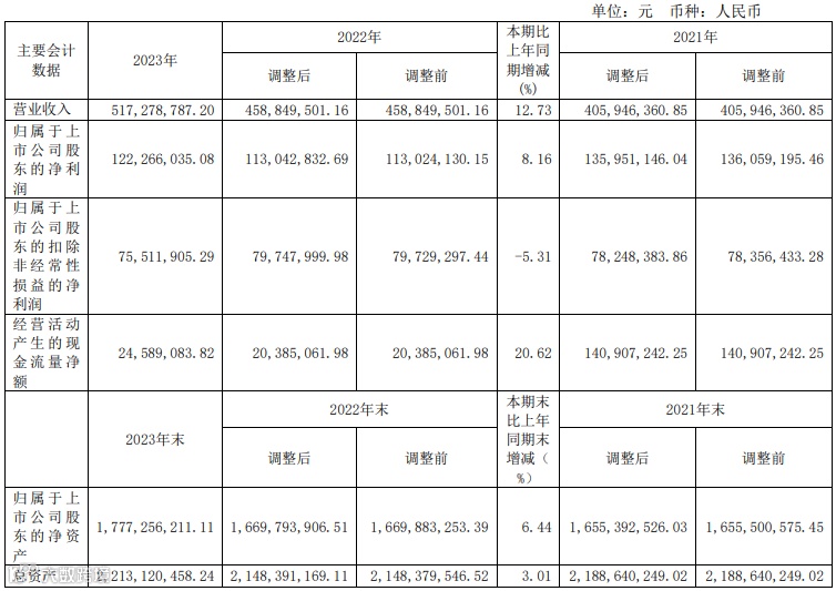 实现归母净利润1.22亿元,同比增长8.16%;实现经营活动产生的现金流量净额0.25亿元;实现基本每股收益0.84元。