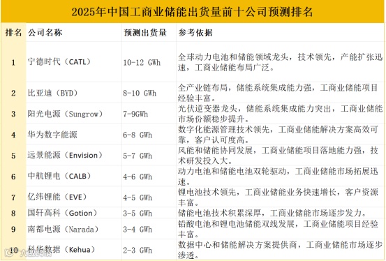 以上预测基于当前市场趋势和企业发展动态,实际排名可能因技术进步、政策调整、市场竞争等因素发生变化。宁德时代、比亚迪、阳光电源等龙头企业预计将继续领跑,而国内更多的新兴力量在崛起,也有望在工商业储能领域占据重要地位。