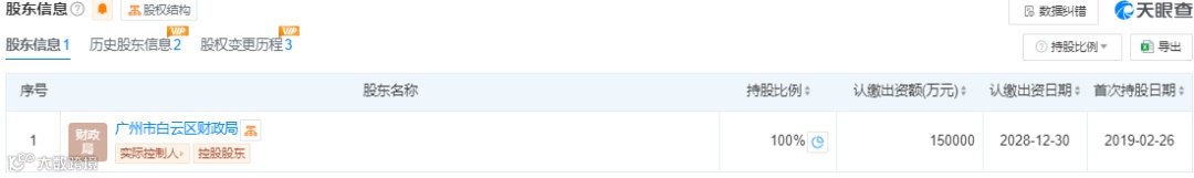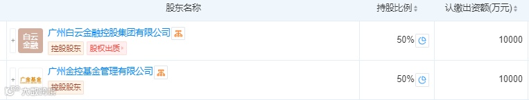 其中,广州白云金融控股集团有限公司实控人是广州市白云区财政局,持股比例100%。