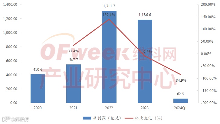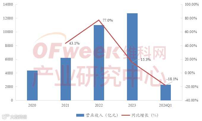 2023年是行业供需发生显著变化的拐点,二季度起硅料新增产能逐步释放,限制行业产出的瓶颈环节消失,主链中其余环节产能早已超过需求,供大于求背景下组件价格快速下行,各主链环节均面临盈利压力。2023年,在国内新增装机量大增144%的背景,样本企业营收增速大幅放缓,2024年Q1营收同比大幅度下滑。