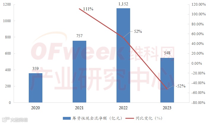 资本市场支持力度减弱,更考验企业自身的造血能力。外部资本市场对于光伏企业的扩产具有至关重要的作用,2020年起各路资金均关注到光伏行业的需求爆发,光伏企业融资能力增强,筹资活动现金流净额快速增长。2023年,资本市场对于光伏企业的热度显著下降,样本企业筹资活动现金流净额同比降低52%。